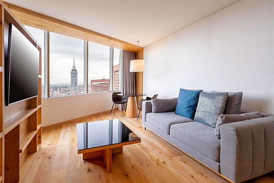 King size bed Stunning views of the city Complimentary WiFi Separated social area Large working desk Two bathrooms with marble walls and bathtub Two closets One 55-inch TV Up to 3 guests with an additional bed
